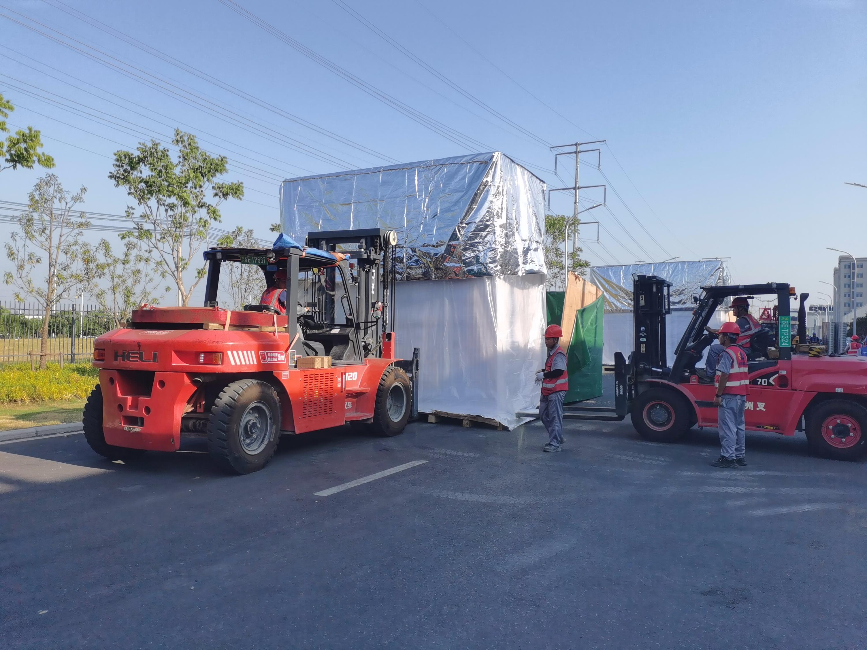 设备运输:根据设备的尺寸和重量,选择合适的运输工具,如低平板运输车、集装箱等,并采取有效的固定和防护措施,确保设备在运输过程中